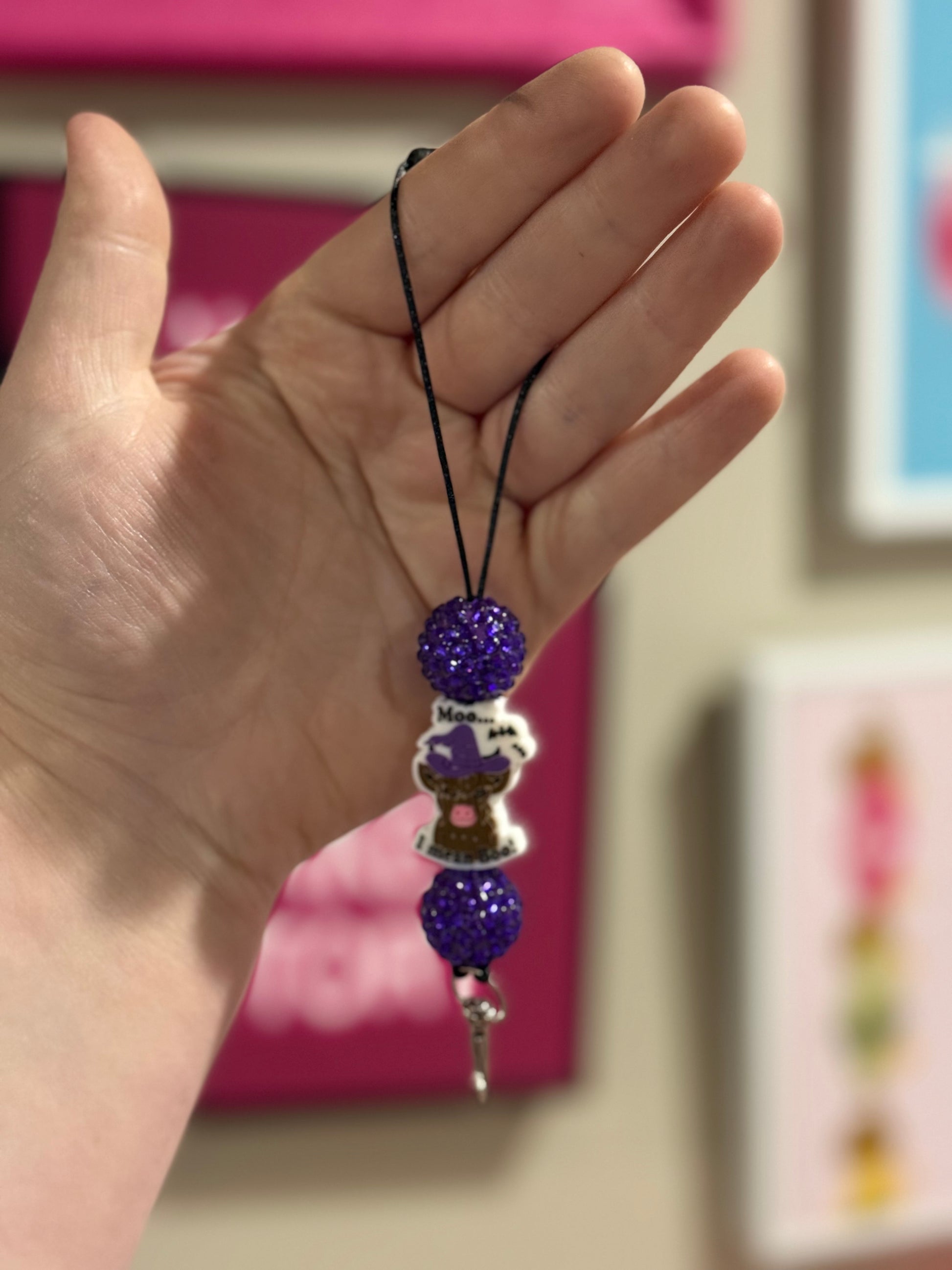 Freshie Hangers are made of nylon cord and breakaway clasps. Hangers range from 6-7inches in length. Clip your freshie to it!